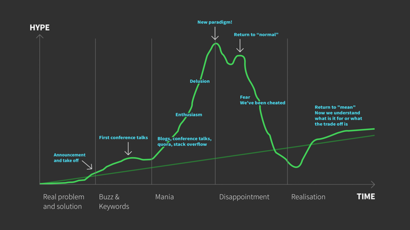 Algunas compañías utilizan la últimas tecnologías en el mercado y seguro intentarán convencerte de que sería una buena idea utilizarlas en tu proyecto. Primero debes entender cuánto tiempo le toma a esa tecnología en ser apta para desarrollar proyectos que perduren.