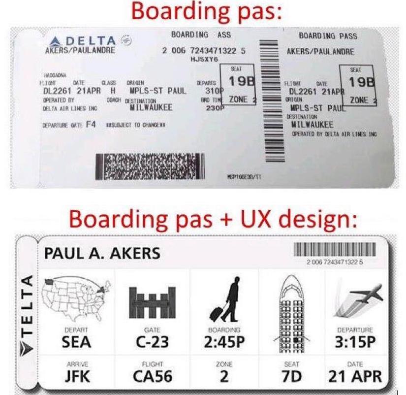 Hay muchos elementos que son funcionales por si solos, como un pase de abordaje donde te indican la ruta, la puerta y el horario de embarque. Lo cierto es que si estás en otro país no siempre comprendes el lenguaje en que se habla, momento en el que la experiencia de usuario es fundamental para facilitar la comunicación. Observemos cómo funciona la experiencia de usuario en un pase de abordaje: